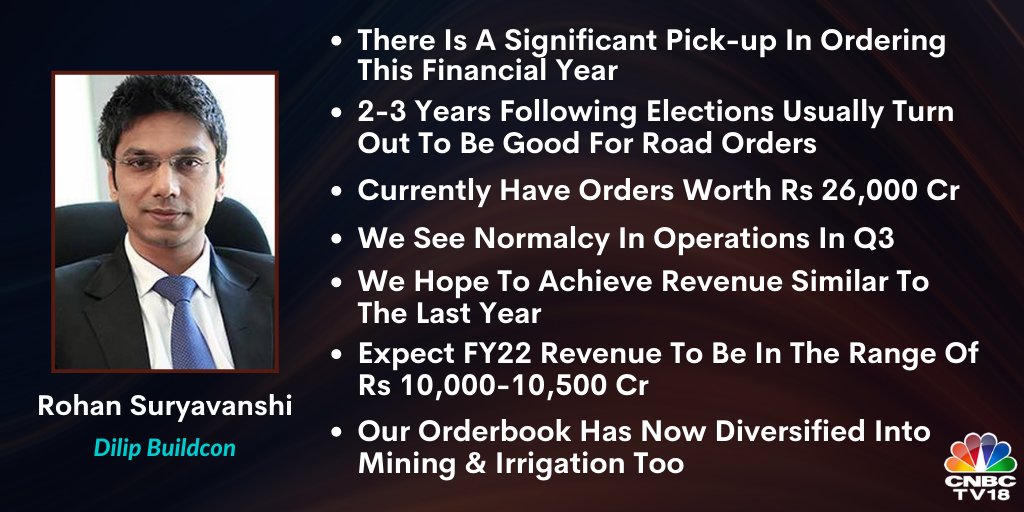 Dilip Buildcon S Rohan Suryavanshi Tells Cnbc Tv18 That The Infra Major S Revenue Has Now Diversified Into Mining Irrigation As Well Adding That Their Margin Will Be Similar To What They Have Delivered